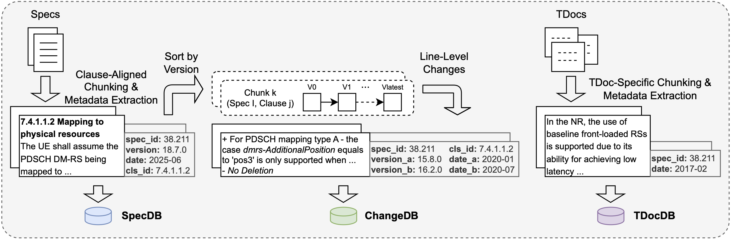 - TDocDB: Houses change request information parsed through an LLM-powered system that distills why changes were made, which specs and clauses were affected, and what the changes entail